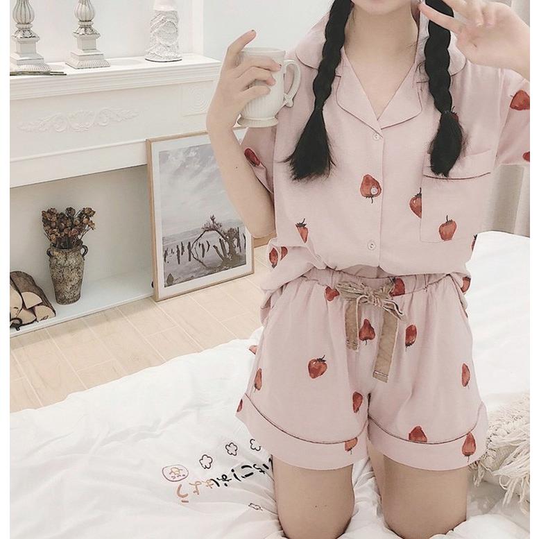 Amazon 夏 綿 前開き レディース ルームウェア ナイトウェア おしゃれ パジャマ かわいい イチゴ 部屋着 寝巻き 化粧着 半袖 女性 上下セット ショートパンツ セットアップ 誕生日 プレゼント M L Xl Xxl パジャマ ルームウェアセット 通販